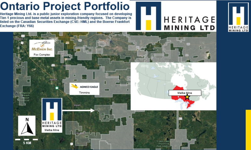 ‘The Melba Mine acquisition offers the Company exposure to the well-known mining camp (Kirkland Lake and Timmins). We would like to thank the Vendor, Advanced Gold Exploration Inc., for amending the terms of the agreement, specifically less dilution in near term. We look forward to communicating next steps in short order.’ Commented Peter Schloo, President CEO, and Director of Heritage